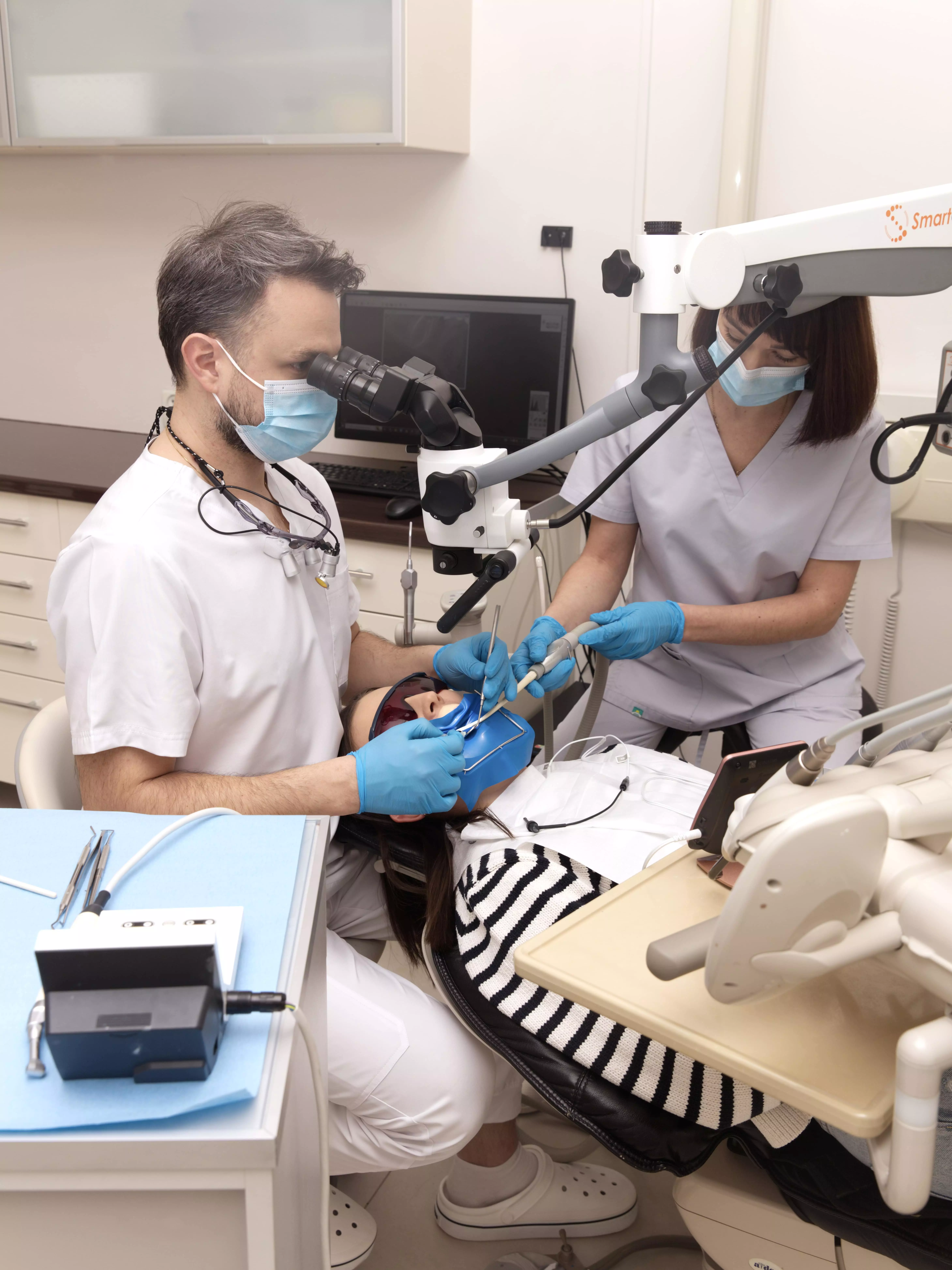 Leczenie endodontyczne w powiększeniu czyli z wykorzystaniem mikroskopu ewentualnie lup stomatologicznych to obecnie najnowocześniejszy sposób leczenia kanałów korzeniowych. Do leczenia kanałowego dochodzi w momencie, gdy ubytek próchnicowy przekracza poziom miazgi zęba. Wówczas najczęściej dochodzi do znacznych dolegliwości bólowych. Doskonała diagnostyka 3D w postaci punktowej tomografii oraz wizualizacja mikroskopowa pozwala na naszym specjalistom na dokładne i szczelne opracowanie i wypełnienie systemów korzeniowych. Mikroskopowe leczenie w znacznym stopniu zmniejsza ryzyko usunięcia zęba.